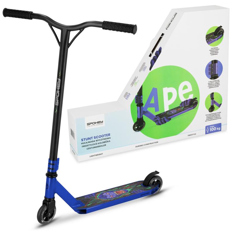 Freestyle kolobežka Spokey APE s výnimočným a nezameniteľným dizajnom od Izy Dudzik je ideálna pre milovníkov freestyle jazdy a trikov. Model APE kombinuje odolnosť a funkčnosť, čo z neho robí ideálnu voľbu pre začiatočníkov aj stredne pokročilých jazdcov.
