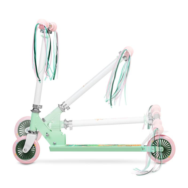 Spokey DUKE Koloběžka s třásněmi, kolečka 125 mm, zeleno-růžová