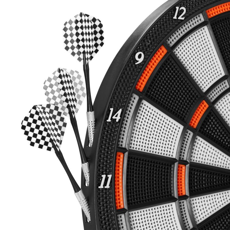 Hry s elektronickým terčem Spokey NARVI LITE můžete hrát sami nebo maximálně v 8 hráčích. Díky dobře čitelnému displeji si nemusíte pamatovat a počítat výsledky na papíře! Terč vám výsledky počítá automaticky sám, díky čemuž se můžete plně soustředit pouze na vaši hru. Možnost regulace hlasitosti umožňuje nastavit hlasitost přesně podle vašich potřeb a čitelný LED displej vás průběžné informuje o aktuálním bodovém stavu všech hráčů.
