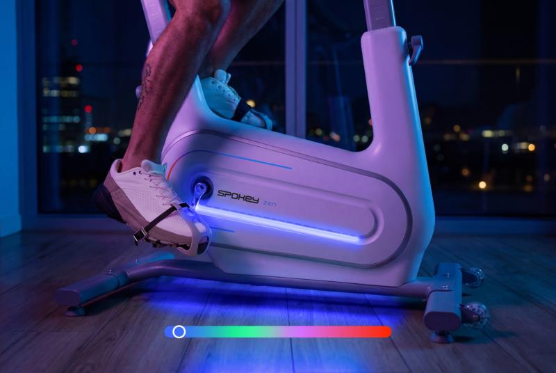 LED podsvícení dynamicky mění barvy podle rychlosti jízdy, od modré přes zelenou až po červenou, což přináší vizuální motivaci a moderní vzhled. Pomocí Bluetooth připojení je možné rotoped propojit s aplikacemi Kinomap a Zwift, které zpestří trénink virtuálními trasami, soutěžemi a sledováním pokroků.