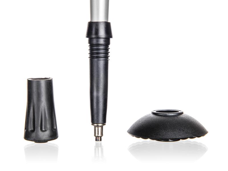 Ocelová špička zajišťuje optimální přenos síly do země a výrazně zvyšuje stabilitu při chůzi po různých površích. Součástí jsou také gumové patky vhodné pro používání na rovných a tvrdých površích, stejně jako sada kloboučků, která umožňuje využití holí celoročně.
