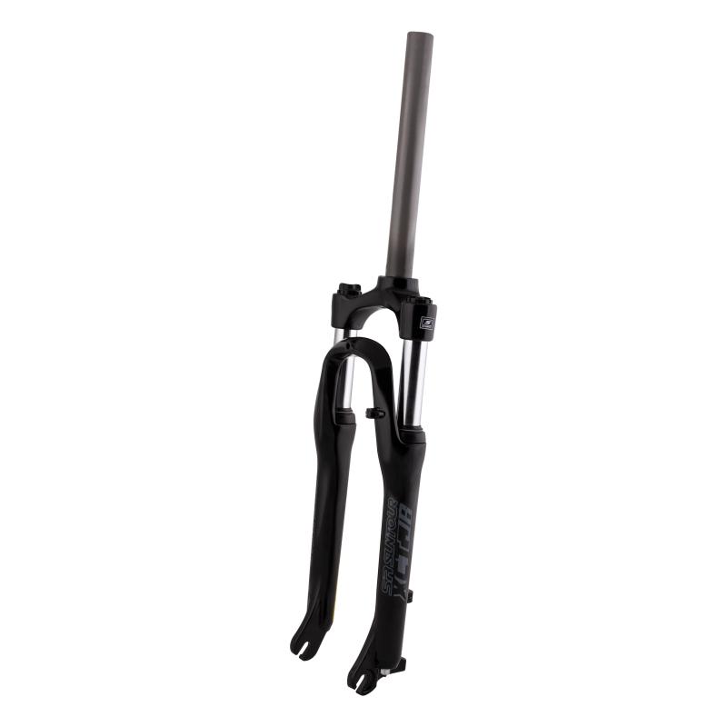 Odskočená vidlica so zdvihom 50 mm a reguláciou predpätia pružiny, vhodná pre detské bicykle s kotúčovými brzdami a priemerom stĺpika 1 1/8". zobraziť celý popis