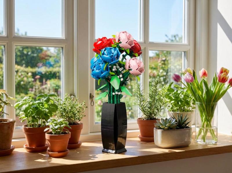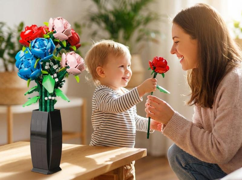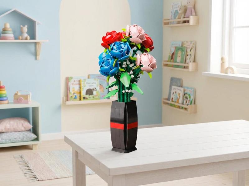 Stavebnice obsahuje kostky pro sestavení květin a vázu. Je určena jako dekorace do domácnosti nebo jako dárek. Podporuje kreativní myšlení a je vhodná pro různé věkové skupiny. Umělá rostlina růží je kompatibilní s květinami Lego. Tato kytice růží je krásný bytový dekorační doplněk pro dospělé a dívky i chlapce. Vytvořte si vlastní dekorativní umělou rostlinu. Tato stylová modelová verze, inspirovaná skutečnou růží, obsahuje 9 velkých květů růží a tmavou vázu. Otáčejte stonky, květy, kořeny a listy modelu a vytvořte si tak preferovaný vzhled. Přestavte stonky a vytvořte tak nová květinová aranžmá.