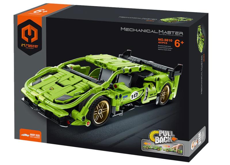 Stavebnice Lamborghini zelené na zpětné natažení 457 dílků