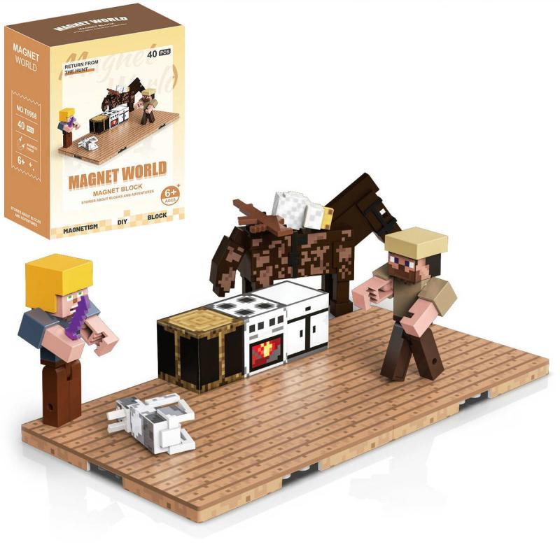 Zvláštností této stavebnice je spojování dílků pomocí silných neodymových magnetů. Herní platforma umožňuje její rozšiřování pomocí dalších podobných sad. Čím více sad, kostek a figurek, tím větší prostor pro hru a kreativitu! Realizujte jakékoli nápady, stavějte libovolné postavy, budovy, zvířata či rostliny - cokoli vás napadne! Díly magnetické stavebnice "Minecraft" jsou vyrobeny z bezpečného ABS plastu, potisk se neodírá a nesmývá vodou.