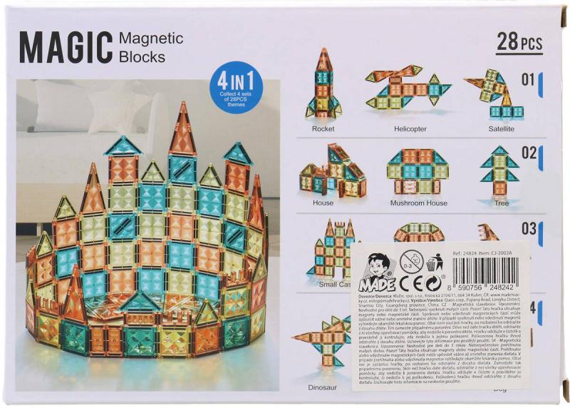 Magnetická stavebnice 2D/3D skládačka, 28 dílků v krabici.Tato magnetická stavebnice je skvělým způsobem, jak rozvíjet kreativitu a prostorové myšlení u dětí od 3 let. S výškou 22 cm, šířkou 41 cm a hloubkou 16 cm je balení vhodné pro malé ruce i pro snadné uskladnění. Materiál z kvalitního plastu zaručuje dlouhou životnost hračky. Stavebnice je ideální pro hravé odpoledne plné zábavy a učení. Vhodná pro kohokoliv, tato stavebnice je skvělým dárkem pro malé budoucí inženýry.