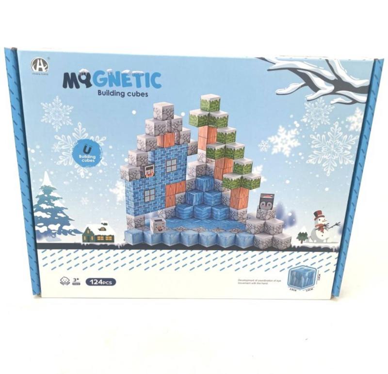 Magnetická stavebnice je kreativní sada určená pro děti od 3 let, která obsahuje celkem 124 dílků. Díky použití magnetických kostek umožňuje tato stavebnice snadné a rychlé sestavování různých tvarů a struktur, což podporuje rozvoj jemné motoriky, logického myšlení a prostorové orientace u dětí. Kostky mají různé barevné vzory, které imitují přírodní prvky jako kámen, dřevo, trávu či led, což dodává stavbám realistický vzhled a zároveň stimuluje dětskou fantazii.