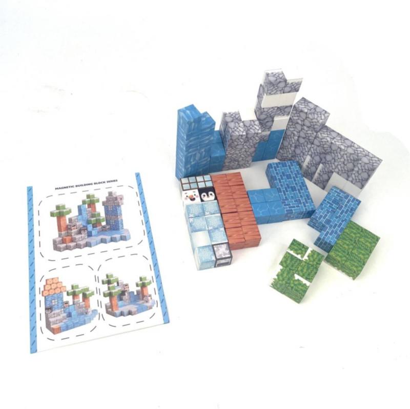 Magnetické kostky mají různorodé tvary a potisky, které jsou zřetelné i při rozložených dílcích. Díky tomu si děti mohou snadno představit různé přírodní scenérie a objekty, což rozvíjí jejich kreativitu a představivost. Sada je vhodná nejen pro zábavu, ale i pro nenásilné vzdělávání a trénink koordinace oka a ruky, čímž přispívá k celkovému rozvoji dítěte. Magnetická stavebnice je tak praktickým a zábavným doplňkem do herního světa malých stavitelů.