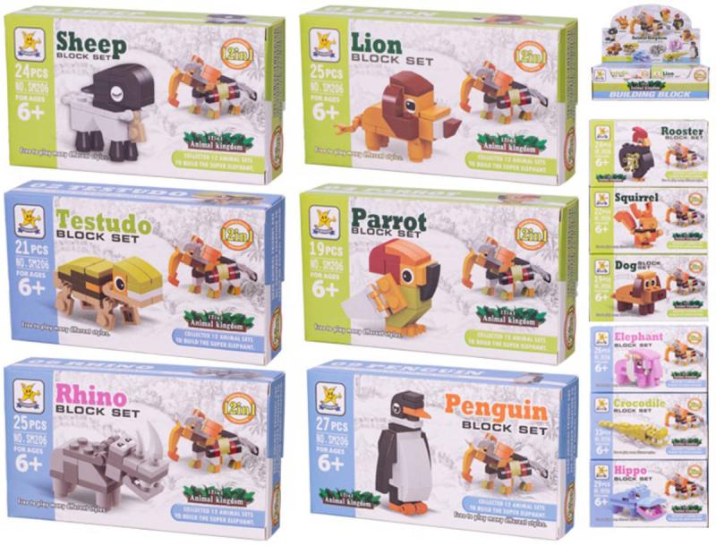 Stavebnice zvířátko 19-33 dílků 12v1 plast 12 druhů v krabici