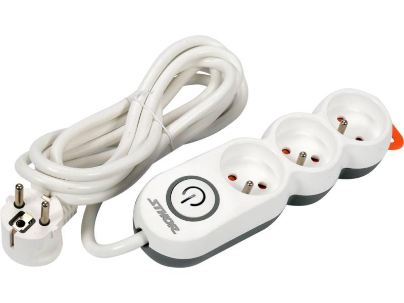 Prodlužuvací kabel, který má uzemněné zásuvky a vypínač od značky Sthor.