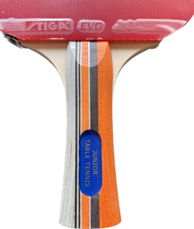 Prkno Junior je vybaveno konkávním držátkem, které zajišťuje pohodlný úchop a lepší manipulaci během zápasu. Kombinace s točivými potahy STIGA EVO o síle 1,8 mm přináší vyvážený výkon mezi rychlostí a rotací, což usnadňuje učení a rozvoj techniky.