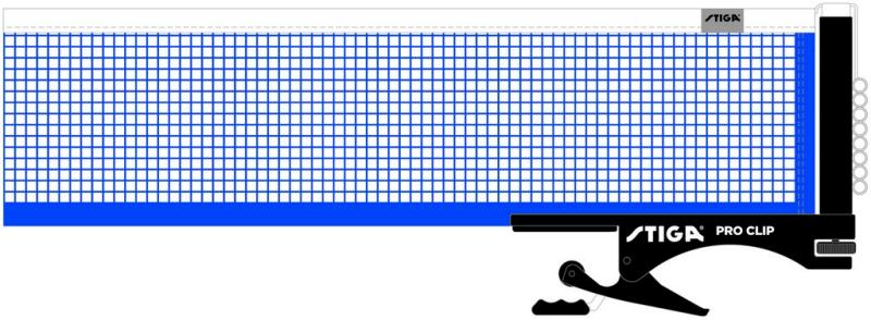 Kvalitní síťka s klipovým uchycením. Modrá nylonová síťovina. Možnost napnutí a zvyšování či snižování síťky. Určena na všechny stoly se šířkou desky 19, 22 nebo 25 mm. Nelze použít na stoly s deskou 28-30 mm.690