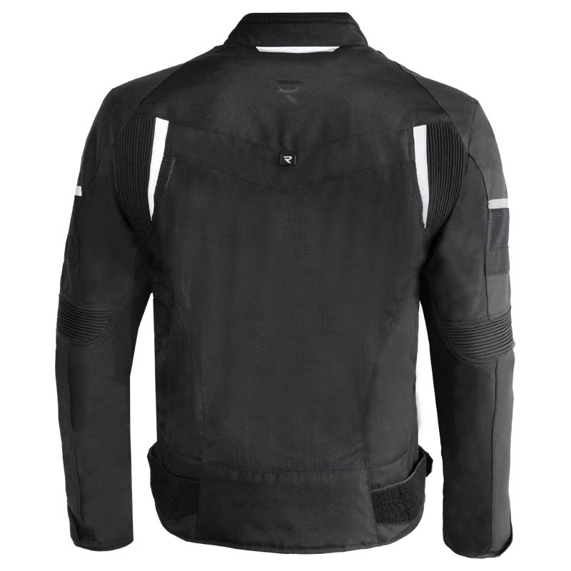 Lehká motorkářská bunda z polyesteru s prodyšnými mesh panely, voděodolnou membránou a certifikovanými chrániči loktů a ramen. zobrazit celý popis