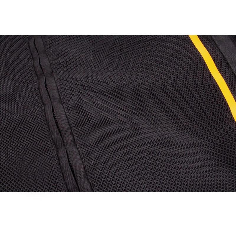 Motorkářská bunda je vyrobena ze 100% polyesteru, který zajišťuje odolnost a dlouhou životnost. Díky mesh panelům na hrudníku, rukou a zádech je bunda dobře prodyšná, což oceníte zejména při teplejším počasí nebo delších jízdách.