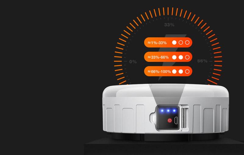 Kompaktní kempinkové světlo od společnosti Superfire je ideální nejen pro jakýkoli výlet do kempu. Můžete ji také použít v případě výpadku proudu, při opravě auta apod. Můžete ji snadno zavěsit do stanu pomocí háčku, který je k ní připevněn. Světlo, které generuje, nedráždí oči. Příslušenství také spotřebovává málo energie a je vodotěsné. Indikátor vás informuje o stavu nabití baterie a můžete jej dobíjet pomocí síťové nabíječky, powerbanky apod. Tlačítko napájení a nabíjecí port USB jsou zakryty průhledným krytem, který je chrání před vlhkostí.