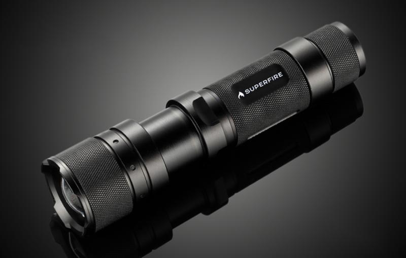 Svítilna Superfire F3-L2 má možnost zaostřit paprsek vysunutím hlavy svítilny, takže osvětlovanou oblast vidíme velmi přesně.