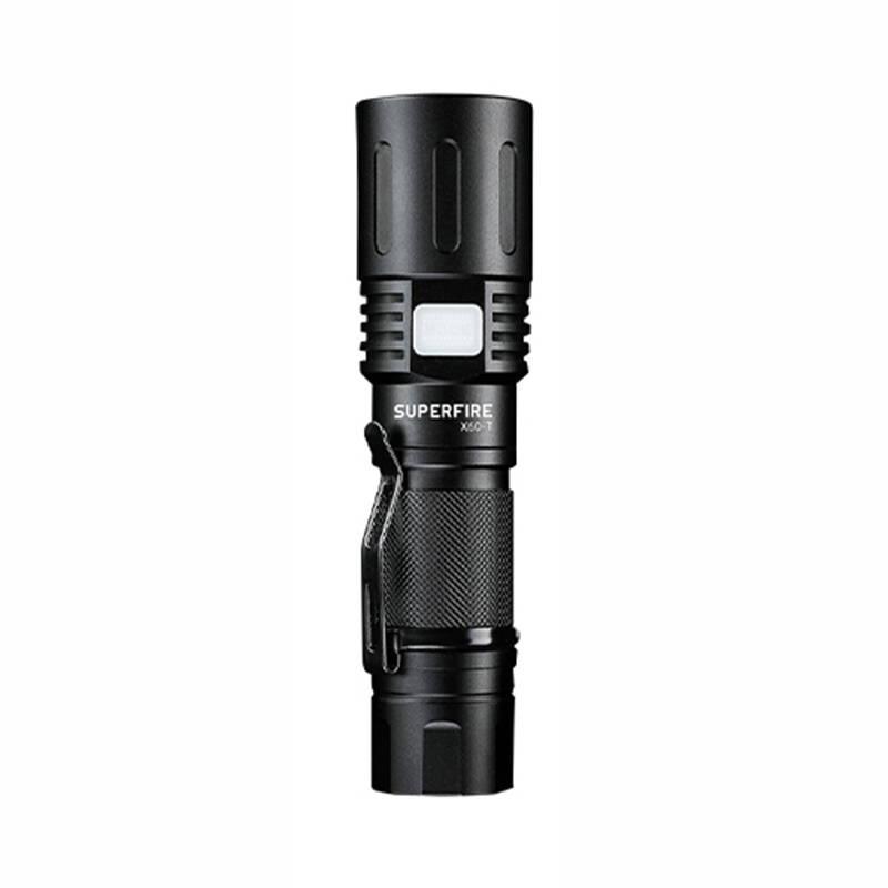 Praktická svítilna Superfire X60-T dokáže svítit na vzdálenost až 300 m. Nabízí až 5 provozních režimů, takže ji snadno přizpůsobíte téměř každé situaci. Díky provozní době 3-8 hodin a voděodolnosti IP34 vás překvapí svým spolehlivým výkonem. Umožní vám přesně osvětlit jak vzdálenější oblasti, tak objekty či místa ve vaší blízkosti.