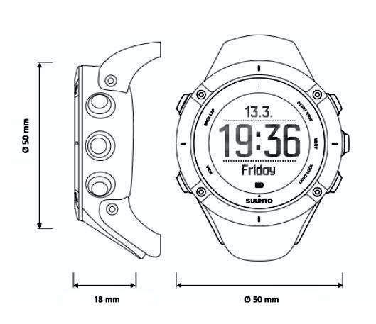 - Materiál: Telo z polyamidu so sklenenými vláknami, luneta z brúseného ocele, zafírové sklíčko, príjemný silikónový remienok so znakom SUUNTO