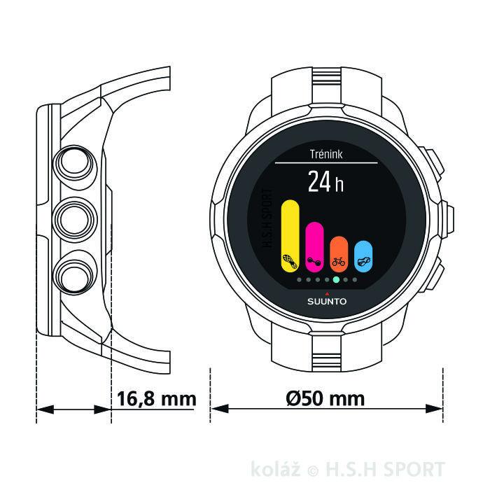 Nesú barometer, presný barometrický výškomer a kompas. S pripojeným hrudným pásom (nie je súčasťou balenia) presne merajú tep a sú vodidlom pre optimálny a bezpečný tréning (graf v reálnom čase, RR interval, osobné zóny). S mobilnou aplikáciou Suunto App sa funkcie hodiniek rozširujú a sú kompatibilné s aplikáciou Strava, TrainingPeaks, Endomondo a ďalšími.
