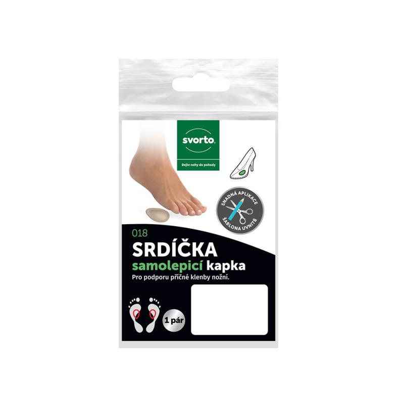 Tieto symetrické srdiečka sú vyrobené z mäkkého latexového odliatku a určené na podporu priečneho plochonožia. Povrch je prekrytý u béžovej verzie prírodnou usňou. Spodná strana je opatrená celoplošnou samolepiacou fóliou. S ohľadom na stupeň plochosti a veľkosť nohy je možné voliť medzi tromi veľkosťami srdiečok. Pre nohu veľkosti 36-41 sú štandardne odporúčané srdiečka veľkosti č. 2. Na presné umiestnenie do obuvi je možné použiť šablónu, ktorá je súčasťou balenia.2.67