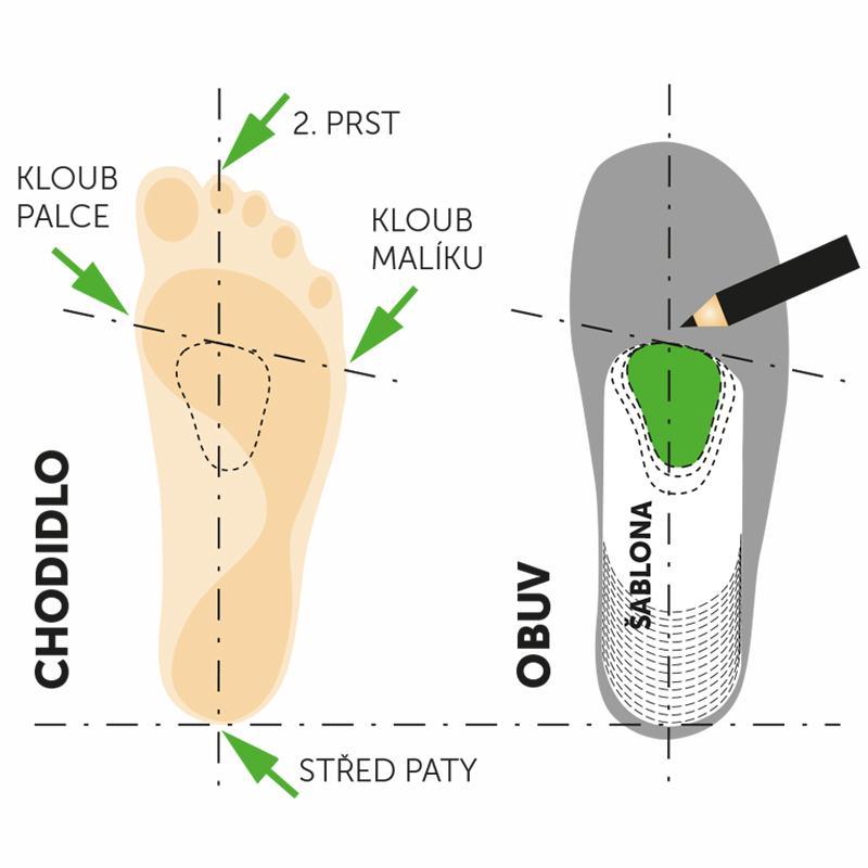 Anatomicky tvarovaná srdíčka pro levou a pravou nohu jsou vyrobena z měkkého latexového odlitku a určená k podpoře příčného plochonoží. Povrch je překryt u černé verze stálobarevným bavlněným textilem. Spodní strana je opatřena celoplošnou samolepicí fólií. S ohledem na stupeň plochosti a velikosti nohy je možno volit mezi třemi velikostmi srdíček. Pro nohu velikosti 36-41 jsou standardně doporučována srdíčka velikosti č. 2. K přesnému umístění do obuvi lze použít šablonu, která je součástí balení.67