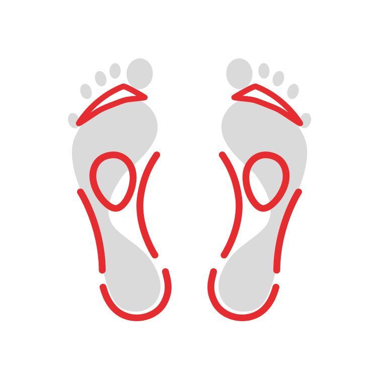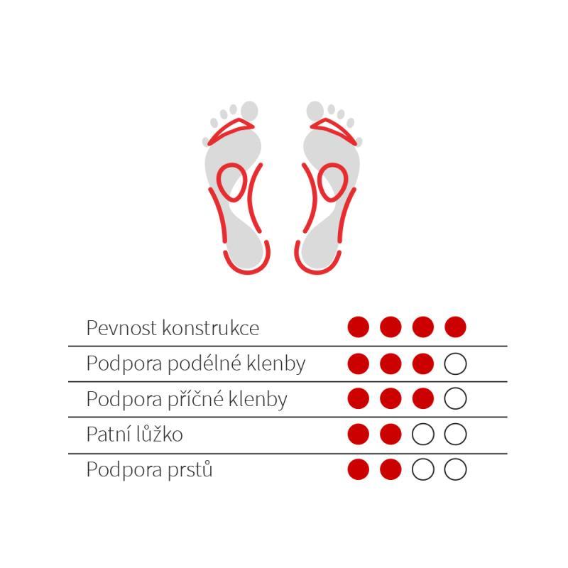 Podpora, vyměkčení a stabilita podpora příčné klenby / podpora prstů / podpora podélné klenby / vyměkčení v patě