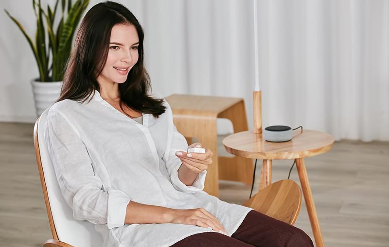 Užijte si pohodlné ovládání svých zařízení. Jednoduše umístěte dálkové ovládání na nějaké snadno přístupné místo - například na stůl nebo komodu. Výrobek podporuje připojení Bluetooth s dlouhým dosahem, takže jej můžete volně používat kdekoli v domácnosti. Nebojte se problémů s kvalitou signálu! Zařízení se také velmi jednoduše a pohodlně používá a k jeho napájení vám stačí jedna baterie CR2450 (je součástí balení).