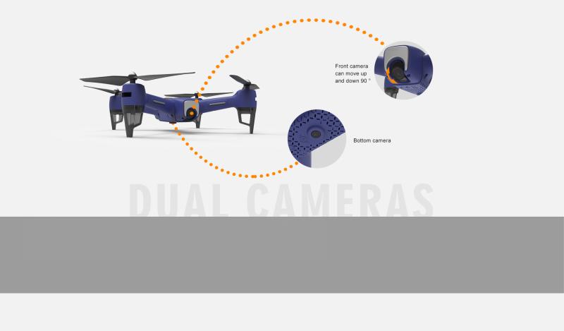 Možnost ovládání náklonu kamery z vysílače. Pokud nemáte GPS, přesto dron udržuje pozici pomocí HD kamery, která je umístěná ve spodní části dronu.