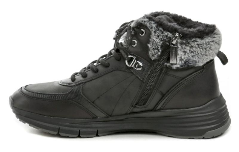 Dámská zimní kotníčková obuv se zapínáním na zip.Svršek obuvi je vyrobená z kombinace pravé přírodní kůže, syntetického a textilního materiálu. Vnitřní část obuvi je vyrobena z chlupatého textilního kožíšku.
