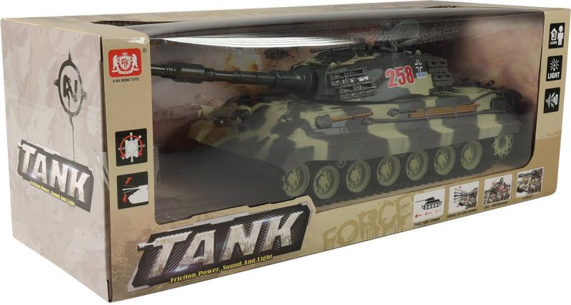 ***Připravte se na akci s tímto vojenským tankem! Hračka o délce cca 38 cm zaujme realistickým vzhledem, světelnými efekty a autentickými bojovými zvuky, které dětem přiblíží atmosféru opravdového bojiště. Tank je vyroben z plastu a je vybaven pohonem na setrvačník. Perfektní doplněk pro malé vojáky a milovníky vojenské techniky.