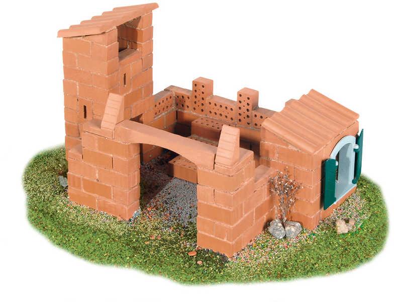 Obsah balení: 3 plánky na stavbu objektů, 150 ks dílků, pojivo (maltu), zednická lžíce, miska, podložka, cihly