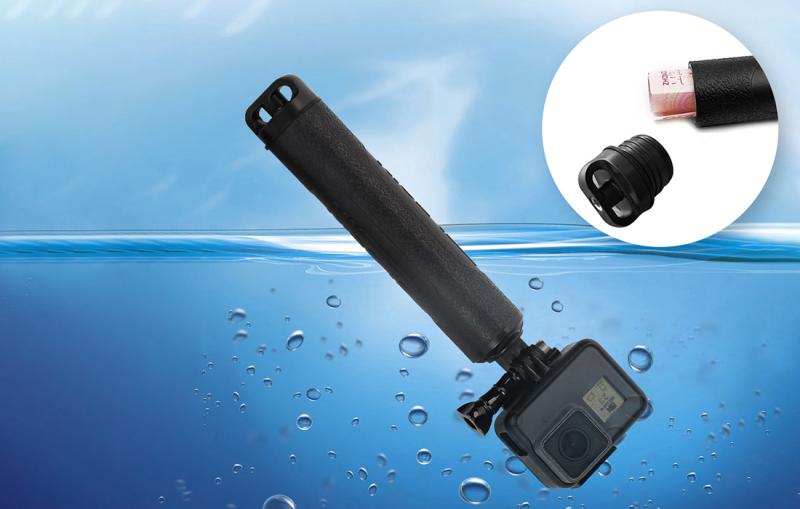 Toto jedinečné příslušenství poslouží k mnoha různým účelům. Lze jej použít jako ruční držadlo a praktickou selfie tyč. Výrobek je také vybaven skládacími nohami, takže jej můžete snadno proměnit ve stabilní stativ. Příslušenství je také vodotěsné a díky promyšlené konstrukci dokonale plave. Je vhodný i pro pořizování působivých záběrů na moři nebo oceánu.
