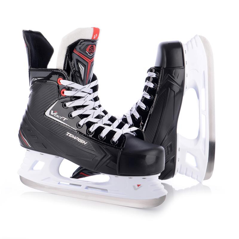 Hokejové korčule TEMPISH VOLT-T predstavujú spoľahlivú voľbu pre amatérskych hráčov, ktorí hľadajú komfortné a odolné vybavenie. Vďaka kombinácii pevného kompozitného termoplastu a anatomického tvaru poskytujú korčule stabilnú podporu a ochranu počas hry.