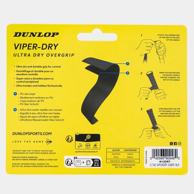 Tenisové omotávky DUNLOP ATP VIPER-DRY Overgrip 0,6 mm čierna