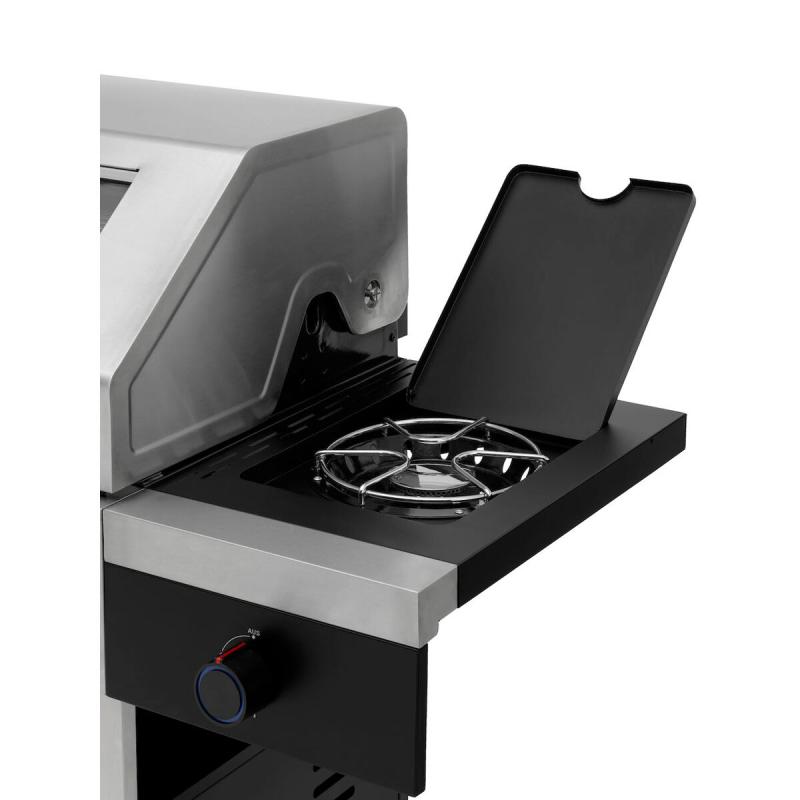 Kromě hořáku POWERZONE má náš plynový gril další 3 vysoce kvalitní a odolné hořáky z nerezové oceli, každý o výkonu 3,2 kW. Součástí dodávky je také 1 boční hořák s výkonem 3,2 kW, např. pro přípravu pokrmů na pánvi wok nebo v hrnci.