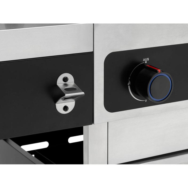 Ve víku je zabudováno skleněné okénko, takže můžete zkontrolovat stav pokrmu, aniž byste otevřením víka grilovací prostor zbytečně ochlazovali. Dalším praktickým doplňkem pro každého kuchaře je bezesporu integrovaný otvírák na lahve.