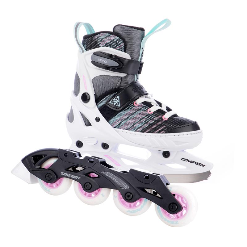 Tieto korčule sú vhodné pre deti, ktoré chcú skúšať rôzne štýly korčuľovania bez nutnosti kupovať zvlášť ľadové a kolieskové korčule. Presné utiahnutie šnúrkami a prackou zabezpečí pevné držanie nohy a stabilitu pri jazde.