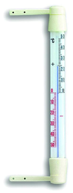 Okenní teploměr s přehlednou stupnicí pro vnější použití vhodný pro připevnění na rám okna.40098160325462.42