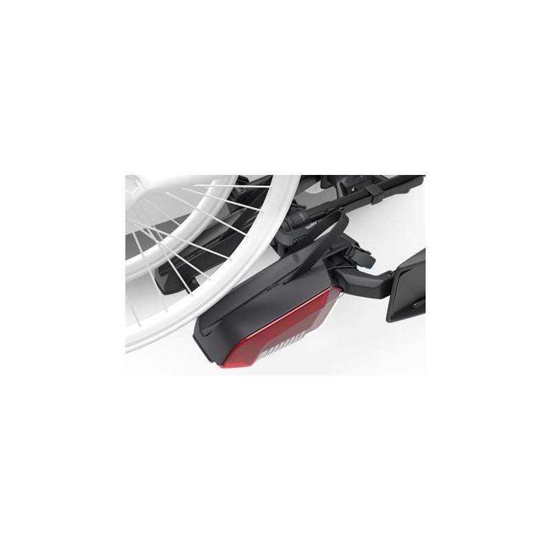 Nosič je vybaven integrovanými zadními světly a držákem registrační značky, což zajišťuje plnou legálnost provozu na silnici. Možnost uzamčení nosiče k vozidlu přispívá k ochraně proti odcizení. Montáž na tažné zařízení je jednoduchá a rychlá, přičemž nosič není sklopný s naloženými koly.