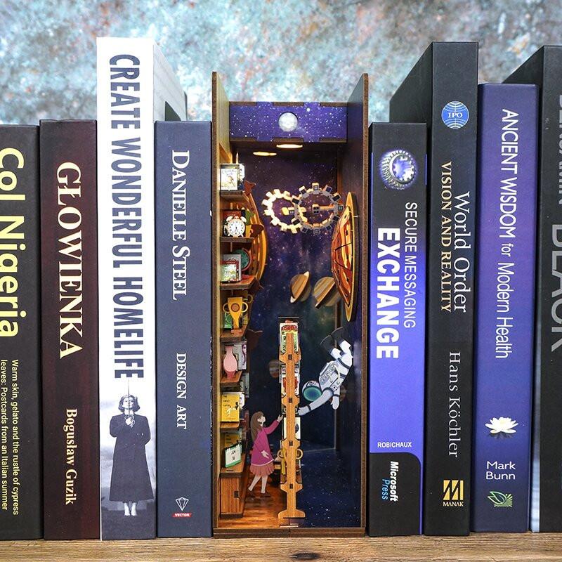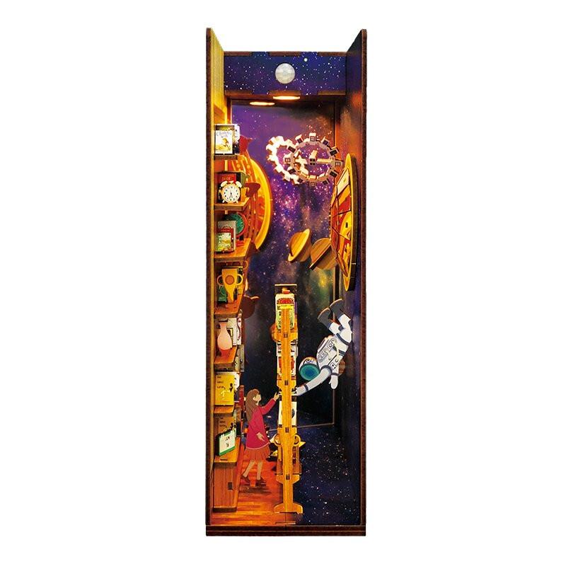 Zamilujte se do příběhu, který přesahuje čas a prostor.Představte si okamžik, kdy se dva lidé spojují napříč vesmírem. Astronaut putující galaxií a dívka ztracená ve svém pokoji – propojeni skrze knihy padající z regálů. Není to jen sada puzzle. TONECHEER DIY Book Nook Kit: Interstellar je příběh lásky, kreativity a neomezených možností. Tento nádherný model není jen ozdobou vaší knihovny – je portálem do světa nekonečné fantazie. Připojte se k milovníkům DIY projektů z celého světa a vytvořte si vlastní jedinečný kousek, který oživí každý kout vašeho domova. Diorama je miniaturní scéna. Nejen miniaturní dům s jednou místností jako je kuchyně nebo restaurace, ale celá scéna, která vypráví svůj vlastní příběh. Tonecheer to implementoval do dřevěného modelu pro dospělé. Tento knižní kout vypráví příběh knihy z knihovny, kterou četla dívka. V knize si přečetla příběh oranžového UFO s astronautem, který jí vyprávěl o vesmíru. Ve svém Book Nook vidíte všechno: hvězdy ve vesmíru, UFO, dívku i astronauta. Začněte tvořit hned teď.