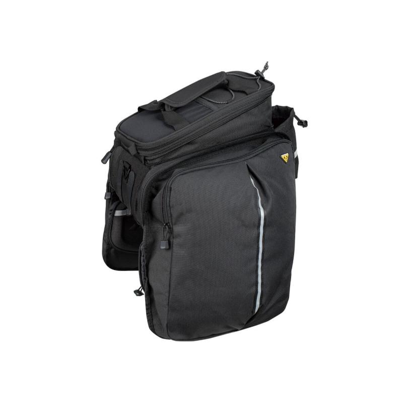 Rozdělená hlavní přihrádka a boční panely se rozšiřují pro větší úložnou kapacitu. Zadní držák na láhev s vodou umožňuje přenášet více vody na delších cestách. Připevňuje se k nosiči pomocí popruhů nebo pomocí integrované desky snadno a rychle nainstalujete adaptér KLICKfix® / Racktime® Snapit nebo MIK®.