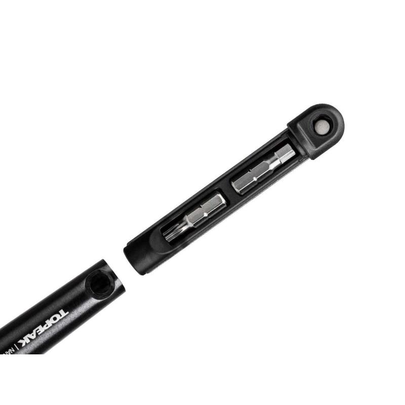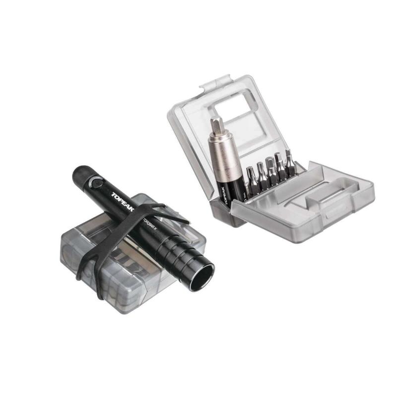 Miniaturní momentový momentový klíč s 2-6Nm nástavcem a sadou základních bitů zamezující poškození, vzniklému přetažením, například drahých karbonových částí. Dva bity mohou být umístěny přímo v těle klíče.Počet funkcí: