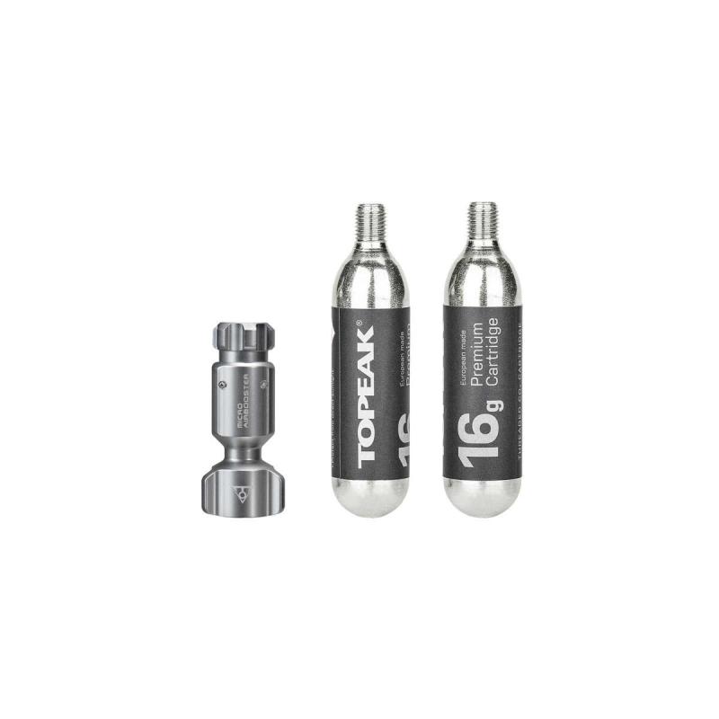 2 threaded 16g CO2 cartridges*, Compartment for CO2 inflator & cartridge