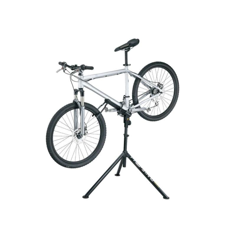 Montážní stojan na kolo TOPEAK Vám nabízí tři opěrné nohy, tělo a podpěrný profil pro rám z hliníku, stabilizační spojky a kontaktní opěrky z plastu – ocelový hák se závitem a dvě kovové zarážky pro stabilizaci předního kola.• Maximální pracovní výška: 110 cm