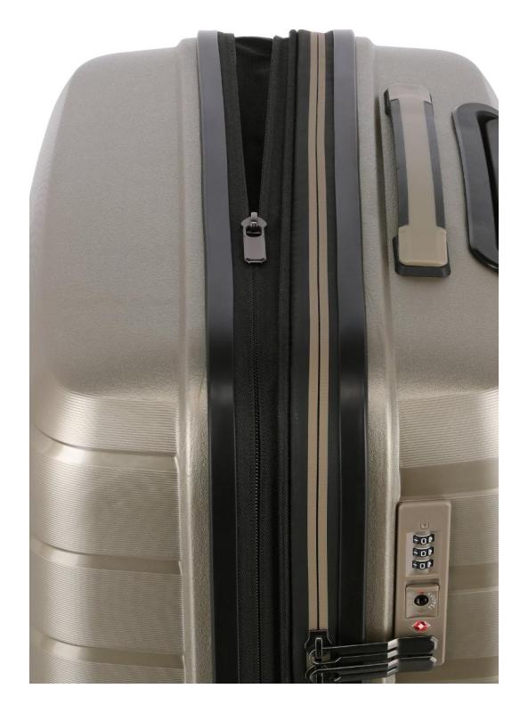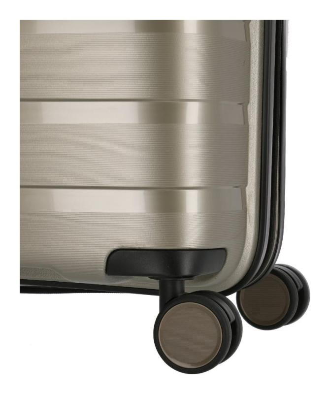 Lehký a elegantní kufr na čtyřech kolečkách z extra odolné skořepiny vybavený TSA zámkem a expandérem.- čtyři dvoukolečka otočná o 360°