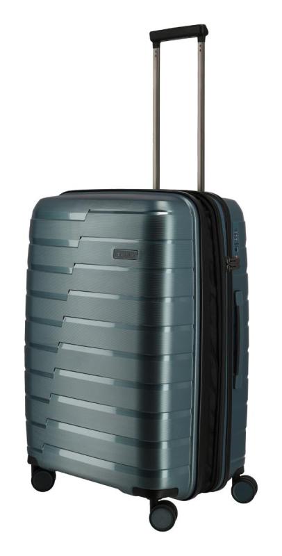 Ľahký a elegantný kufor na štyroch kolieskach z extra odolnej škrupiny vybavený TSA zámkom a expandérom.- štyri dvojkolieska otočné o 360°