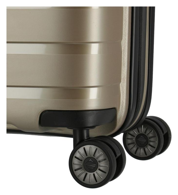 Lehký a elegantní příruční kufr na čtyřech kolečkách z extra odolné skořepiny vybavený integrovaným TSA zámkem a expandérem.čtyři dvoukolečka otočná o 360°