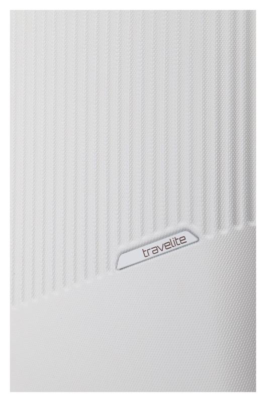 Štvorkolesový skořepinový kufor z robustného ABS plastu v trendy bielej farbe vybavený integrovaným TSA zámkom.4 dvojkolesá otočné o 360°