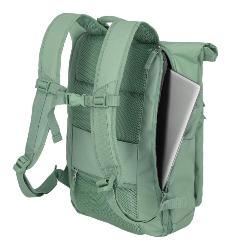 Stylový městský batoh s přihrádkou na 15,6" notebook a rolovacím zavíráním.prodyšný zádový panel