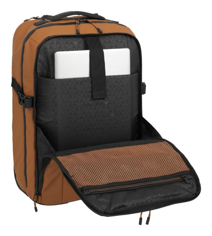 Batoh je vybavený dvoma veľkými kolieskami s integrovaným krytom, ktoré chránia pred poškodením pri nosení na chrbte. Polstrovaná kapsa pojme notebook až do veľkosti 15,6" (34 cm), takže je ideálny pre pracovné cesty alebo štúdium.